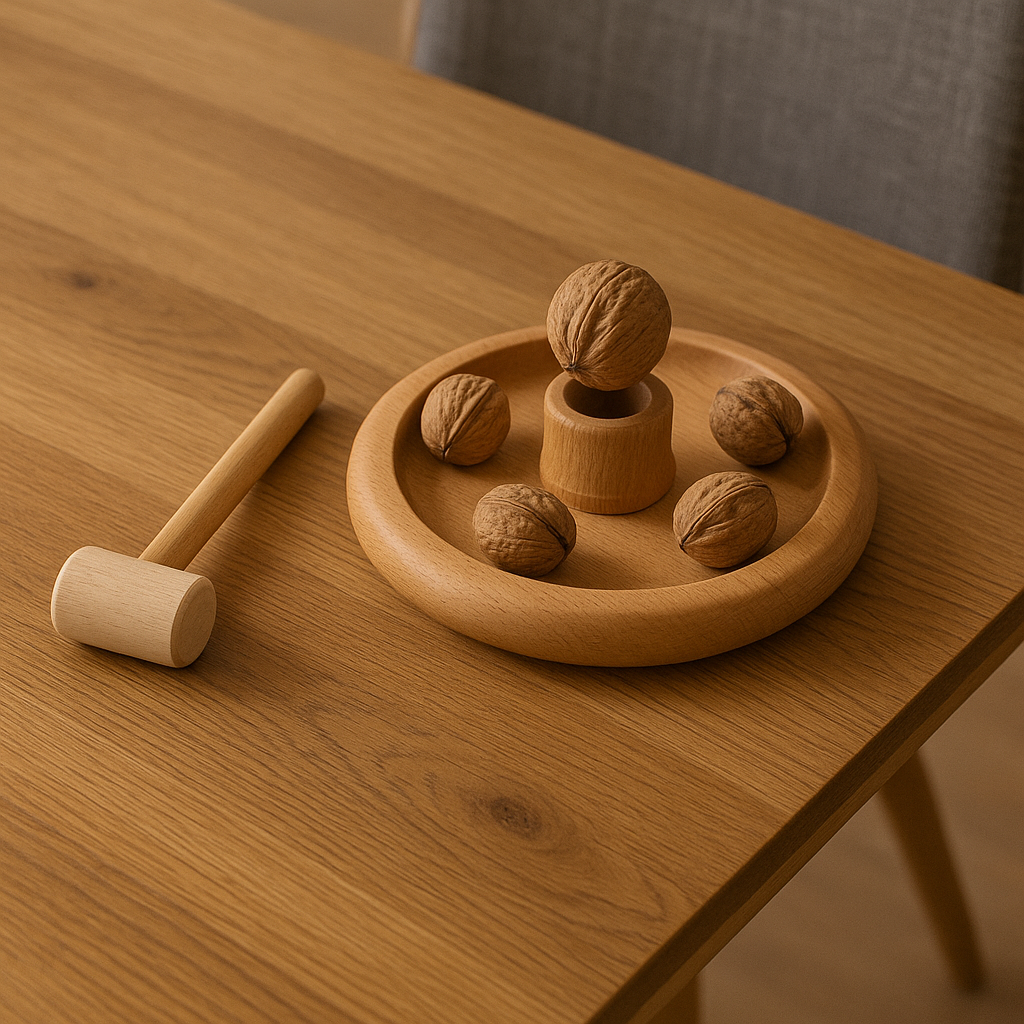 Vassoio in legno con martello schiaccianoci