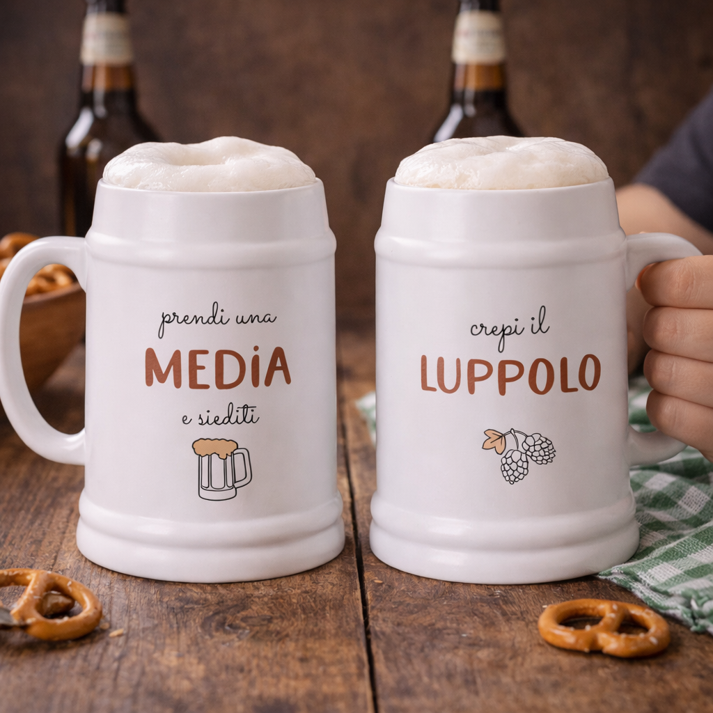 Boccale Birra New Travisate 500 ml - fantasie assortite - cm. 13h
