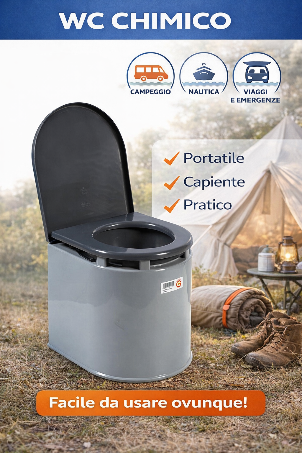 Gabinetto chimico da campeggio realizzato in plastica resistente.